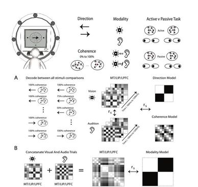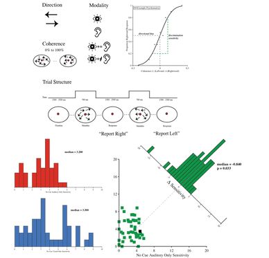 We are developing audio and audiovisual versions of the standard visual psychophysics tool known as a Random Dot Kinetogram (RDK). This allows us to test a number of hypotheses about multisensory integration when processing moving stimuli.